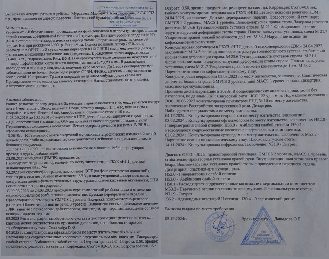 После последнего лечения, когда появилась моторика в руке, Маргарита сказала: «Мама, у моей руки появились мозги, она стала меня немного слушаться» 😟. Но радости от этого не было, лишь тревога и напряжение. Кумир у Риты — её брат Егор 💪. Он младше её, но в его жизни всё проще: 13 лет, спортивная школа, 3-й взрослый разряд по плаванию на спине 🏊♂️. Он быстро растет, а она застряла в этом теле, не способном точно слушаться 😔.