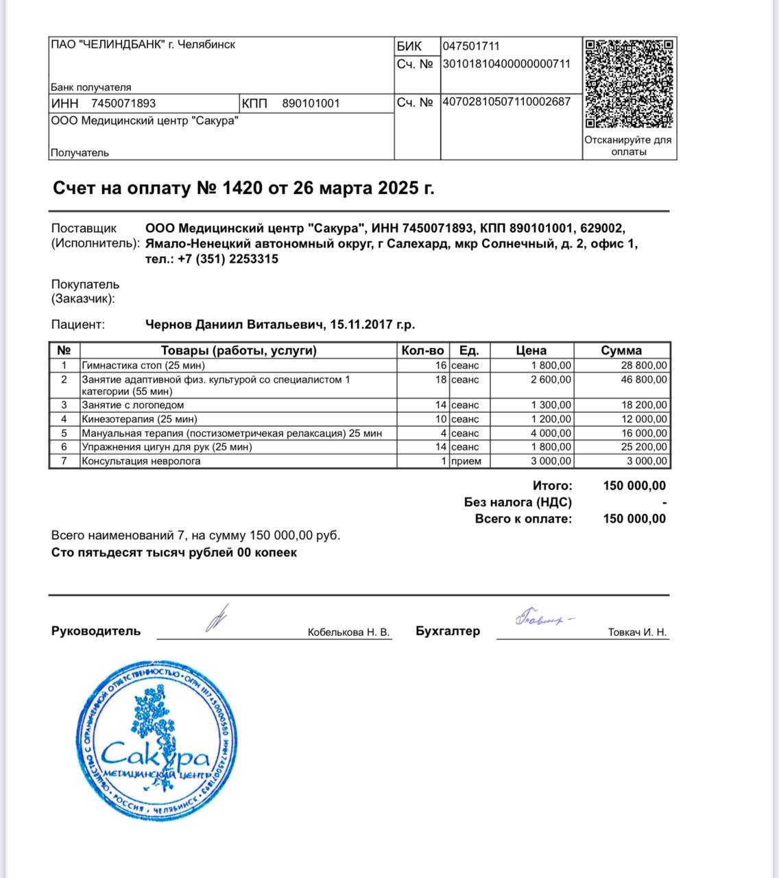Реабилитацию можно пройти в медицинском центре «Сакура» (Челябинск) 🏥. Там работают специалисты, которые ставят на ноги детей с диагнозом ДЦП. Но стоимость курса — 150 000 рублей 💸. Для меня, мамы, которая одна воспитывает двоих детей и не может работать из-за ухода за сыном-инвалидом, эта сумма неподъёмна 😭.