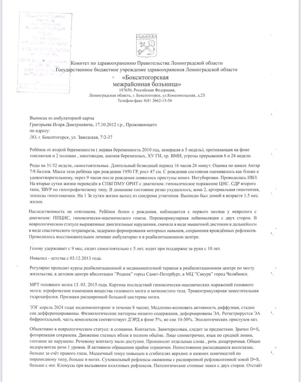 В нашем городе нет качественной реабилитации ❌. Мы вынуждены ездить по другим городам, и за его 8 лет прошли уже больше 20 курсов 🛣️. Самые большие результаты даёт центр «Сакура» в Челябинске 🌸. Там его руки и ноги оживают. Там он учится вставать, ползать, держаться. Там появляется надежда ✨.