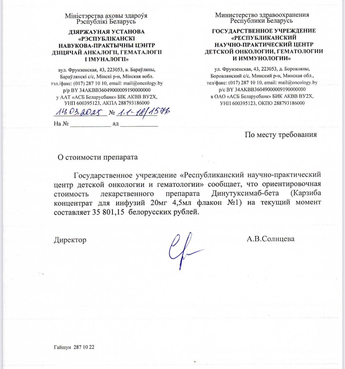 Требуется дорогостоящий препарат Динутуксимаб-бета‼️