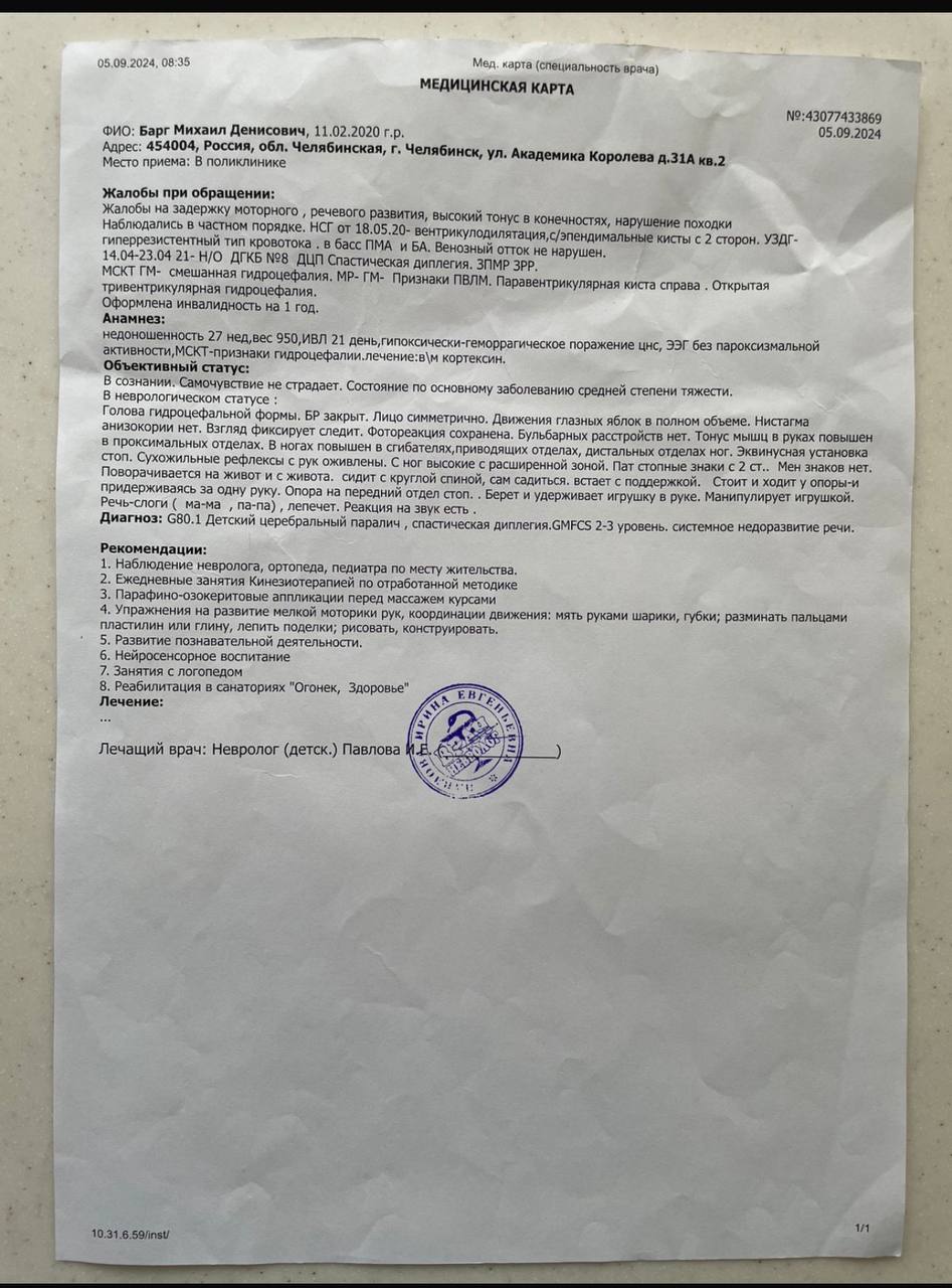 Но беда не пришла одна… Пока я ждала чуда для одного сына, второй тоже умирал – медленно, незаметно… В 8 месяцев я поняла, что с Мишей что-то не так. Он не садился, не ползал… А потом – страшный диагноз: ДЦП. Спастическая диплегия… 😭