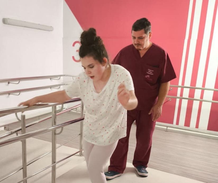 Настя продолжает послеоперационный курс реабилитации. Пока трудности есть в ходьбе, но постепенно с каждым днём крепнут мышцы ног и спины.