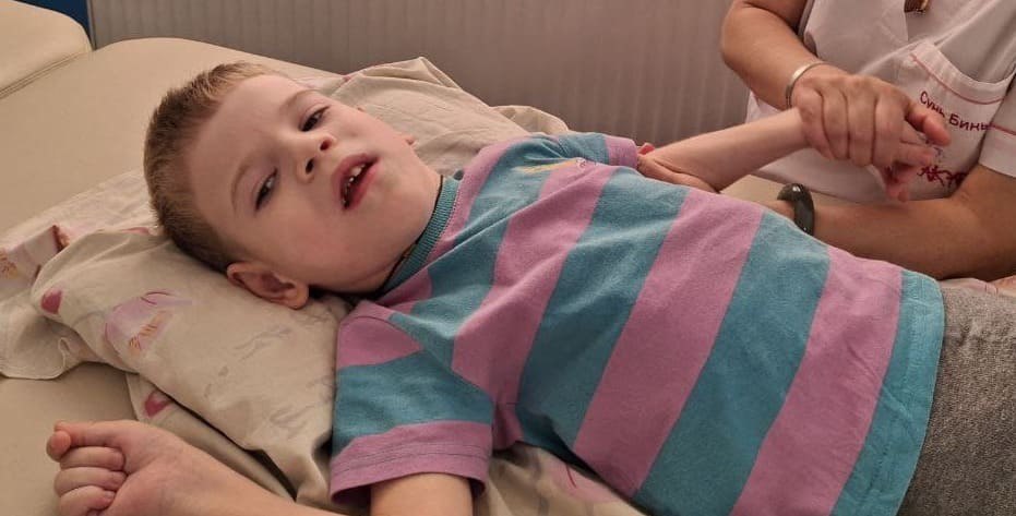 Добрый день. Дима приехал на реабилитацию. Занимается упорно. Трудно но справляется